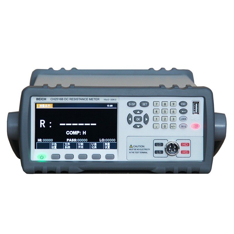 CH2516/A/B系列直流電阻測試儀具有高精度寬量程高性?xún)r(jià)比的特點(diǎn),采用當前主流的32bits CPU和高密度SMD貼裝工藝、24位色4.3英寸IPS彩色液晶屏,界面直觀(guān)清爽、操作便捷。儀器具有較高的抗干擾性;量程范圍為: 1uΩ-2MΩ;顯示位數為四位半;測試速度可達20次/秒;測試精度可達 0.05%;溫度補償能免除環(huán)境溫度對測試工作的影響;本儀器配備有專(zhuān)業(yè)分選功能與數據輸出功能等,具有多樣分選訊響設置,還可匹配Handler接口,應用于自動(dòng)分選系統完成全自動(dòng)流水線(xiàn)測試,使測試效率倍增。并配備RS232接口,用于遠程控制和數據采集與分析。本儀器小巧、緊湊但功能齊全。通過(guò)四端子測試法,可高速、高精度的測量各種高、中、低值電阻器;各種開(kāi)關(guān)接觸電阻;接插件接觸電阻;繼電器線(xiàn)包和觸點(diǎn)電阻;變壓器、電感器、電機、偏轉線(xiàn)圈繞線(xiàn)電阻;導線(xiàn)電阻;車(chē)、船、飛機的金屬鉚接電阻;保險絲、電阻器、導電橡膠的直流電阻、印制板線(xiàn)條和孔化電阻等直流低電阻。由于儀器配備有溫度補償功能,因此適合于測量電阻值因溫度而發(fā)生變化的被測對象。儀器廣泛用于研究開(kāi)發(fā)、生產(chǎn)線(xiàn)、進(jìn)料檢測等各種場(chǎng)所。